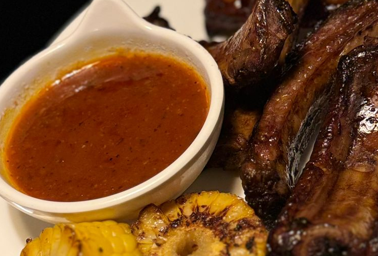 Ребрышки свиные, кукуруза, красный соус