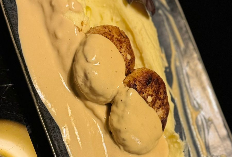 Котлеты из щуки, картофельное пюре, соус